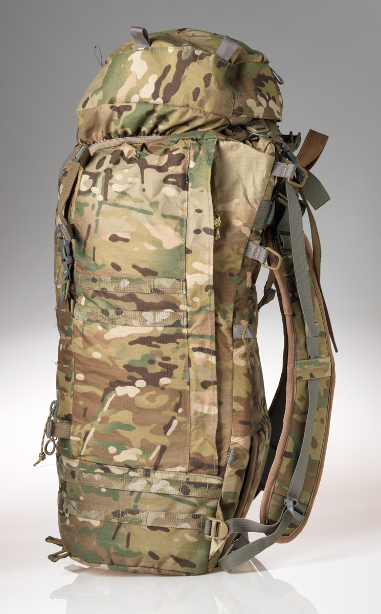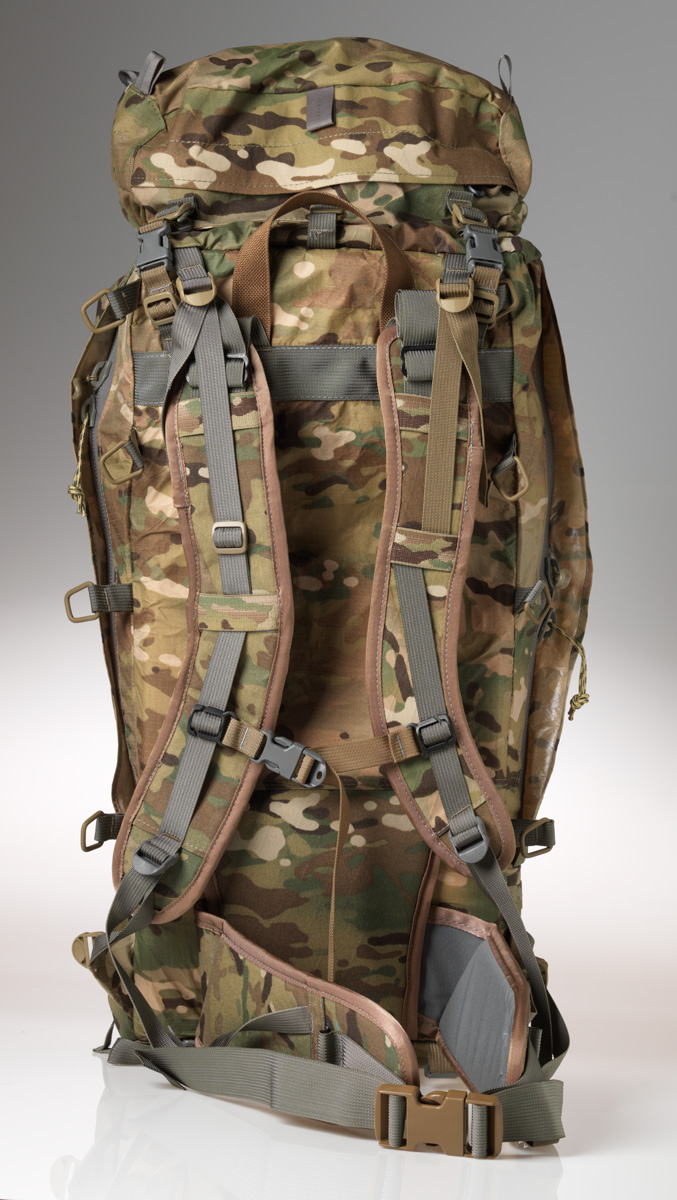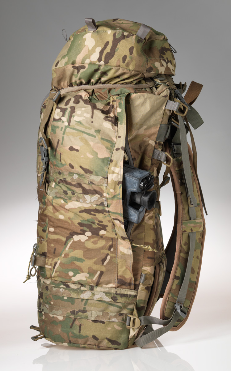 The weapon system can be carried diagonally or vertically as the user determines optimal. The pack is both a top loader and provides easy front access through the #10 YKK zipper on the front. The pack possess significant internal organizational capabilities without adding too much junk or extraneous pockets. The pack can be stripped of the frame system, the weapon catch, the hipbelt & lid and all straps. The shoulder straps are adjustable in length to fit plates.